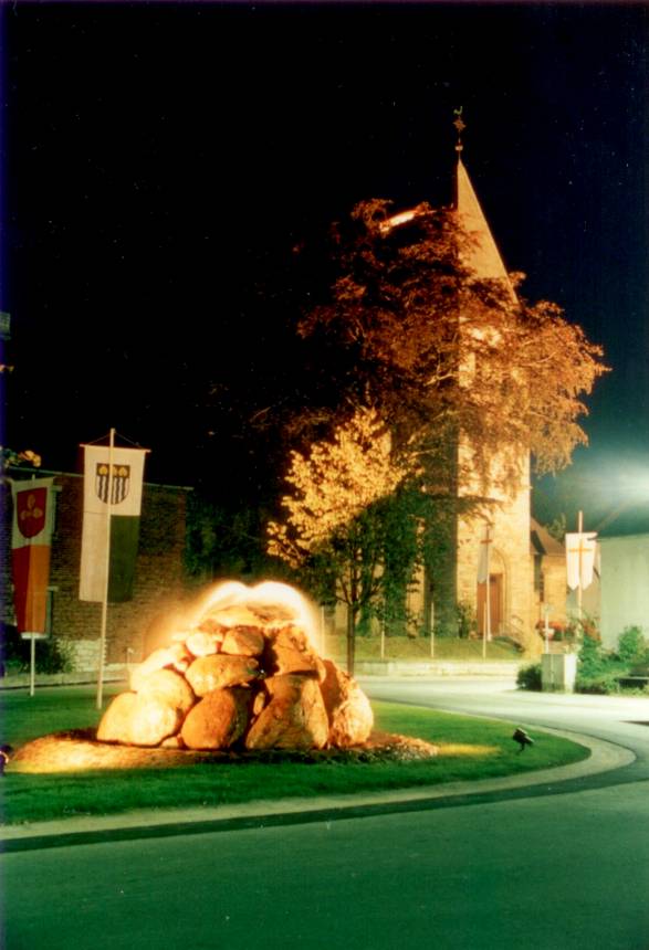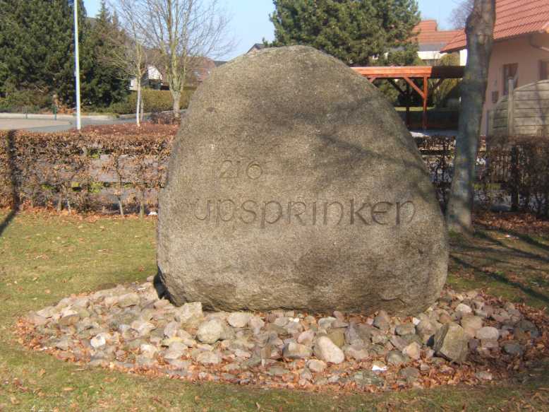 Zur 775-Jahr Feier des Dorfes haben 1991 ein etwa 10 Tonnen schwerer Findling
